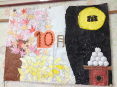 お月見や紅葉と、とても秋らしく仕上がっています。御利用者様と和気あいあいと作業させていただきました。